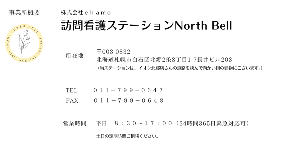 私たち訪問看護ステーションNorth Bellでは、ご利用者の在宅生活を支えるため、